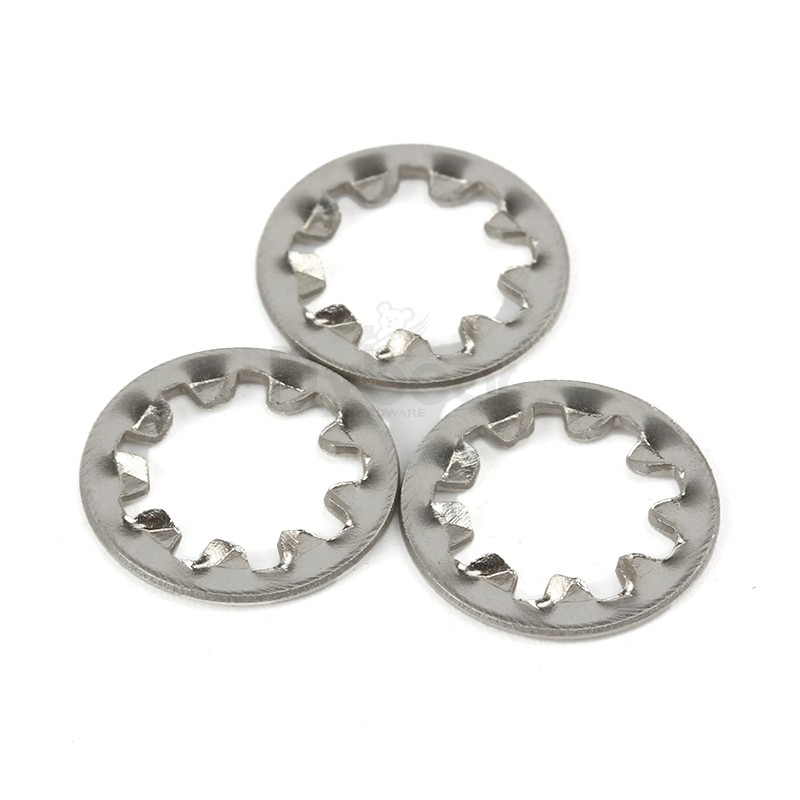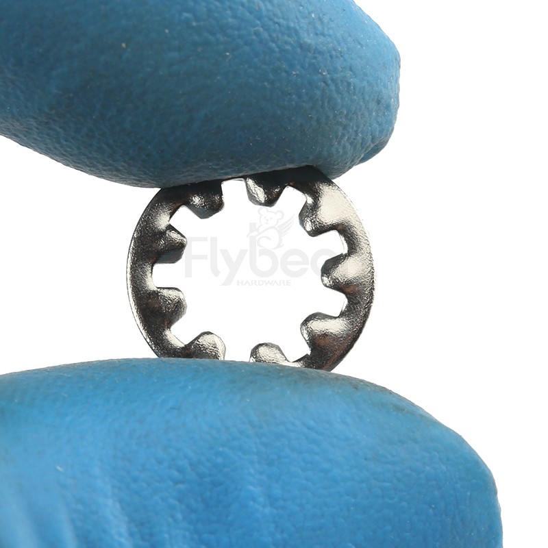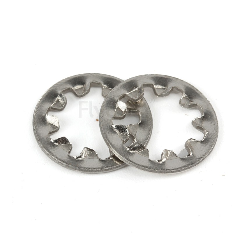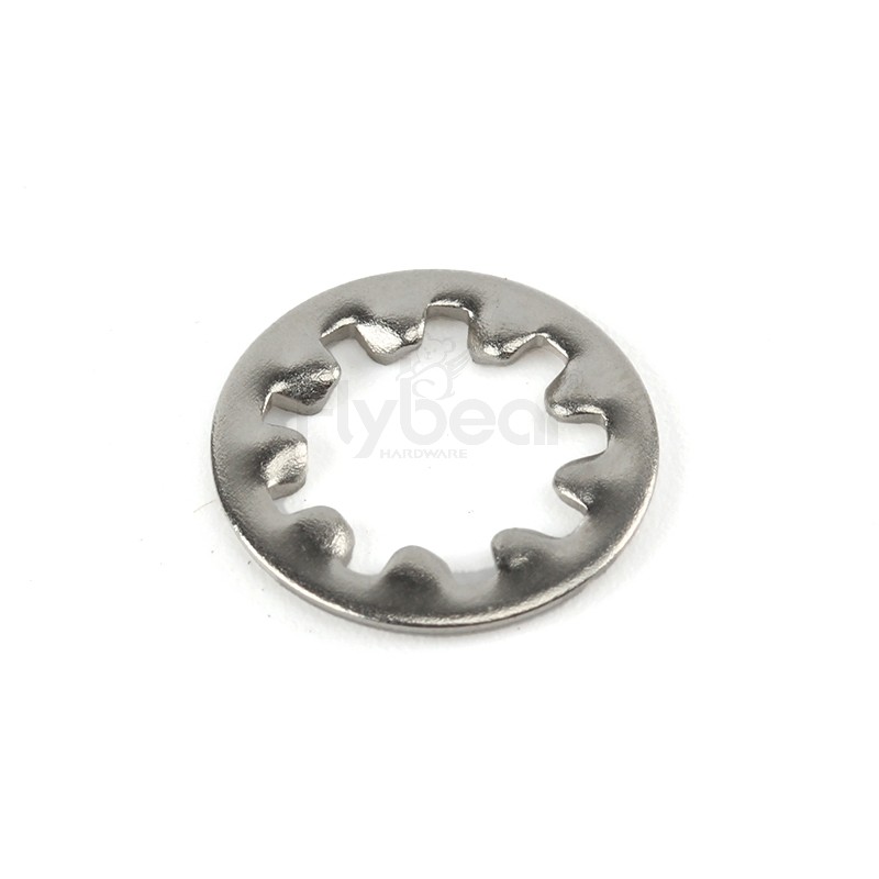 與平墊圈對比: 內(nèi)齒鎖緊墊圈不僅能分散壓力,還能防松,平墊圈僅能分散壓力,無法防止松動(dòng)。