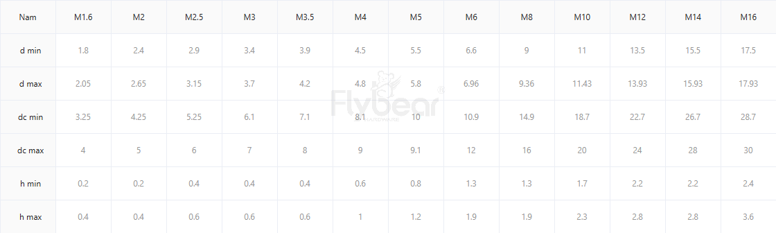 規(guī)格尺寸:M1.6-M64