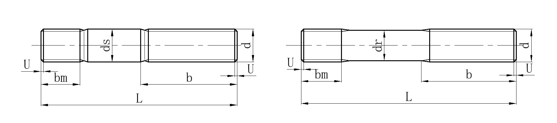 A193.B8M(316)不銹鋼美制雙頭非等長法蘭栓接螺柱粗桿(固溶)ANSIB18.31.2