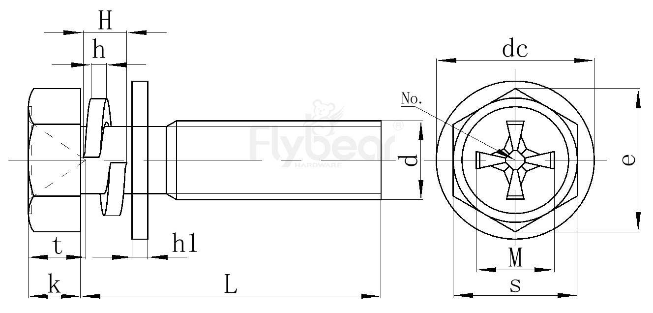 碳鋼十字槽凹穴六角頭帶平墊組合螺釘GB9074.13-1988