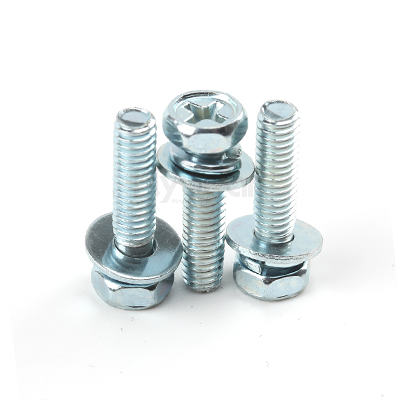 碳鋼十字槽凹穴六角頭平彈墊組合螺釘GB9074.13